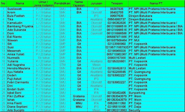 lowongan kerja langsung kerja daftar nama yg sudah bekerja